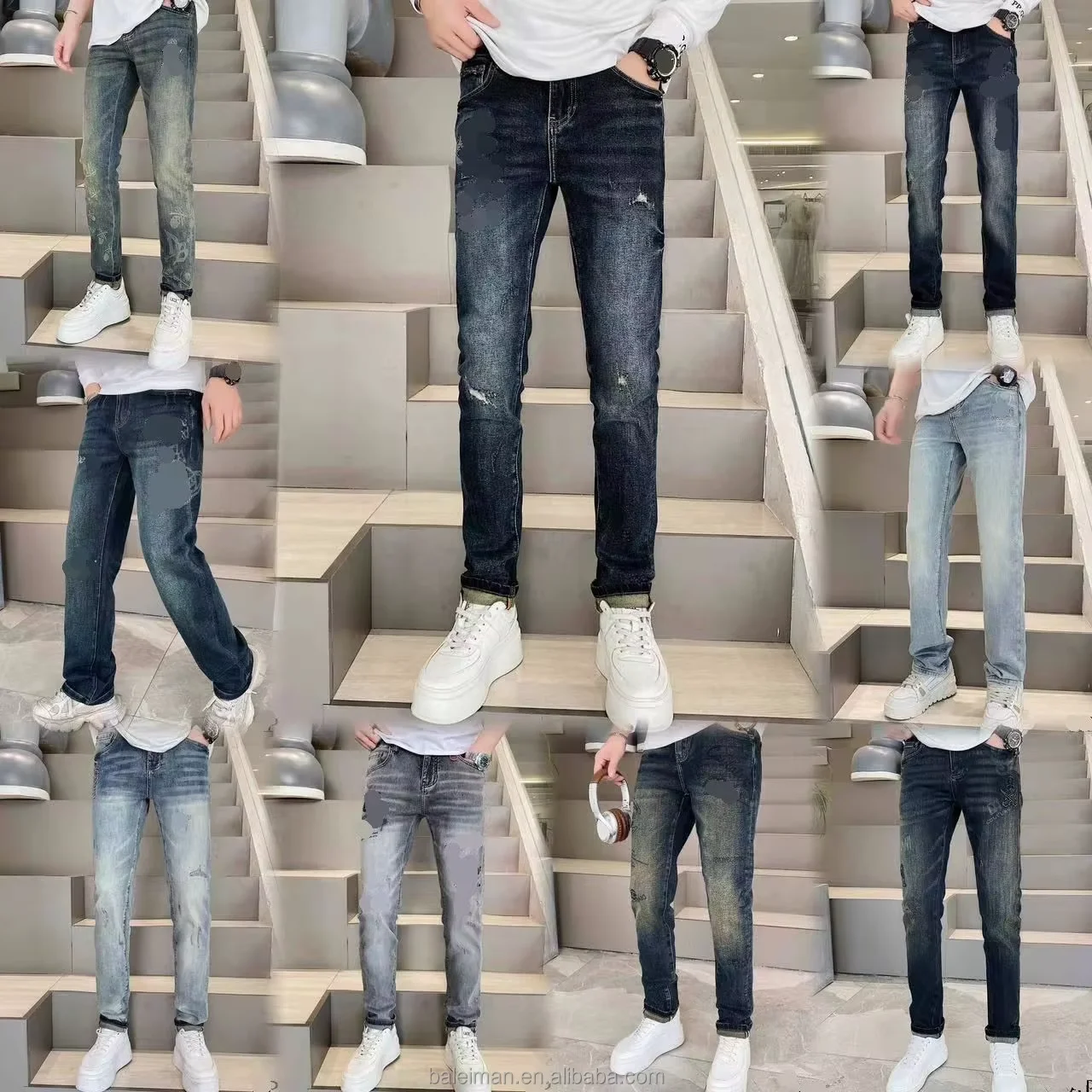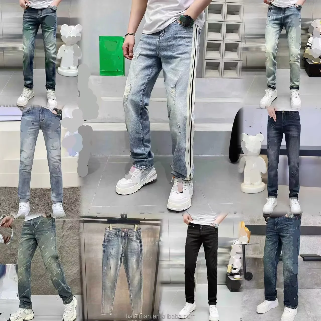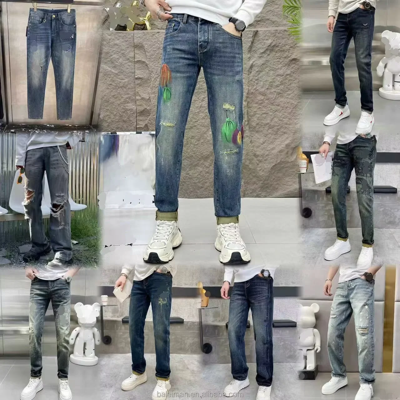 High Quality Mid-Rise Baggy Men's Jeans Custom Embroidered Denim Trousers Street Hip Hop Style Button Decoration for Winter